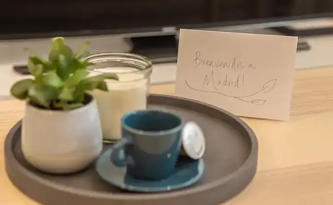 Hemos puesto un gran interés en dar un servicio de calidad a nuestros huéspedes, creando un ambiente cálido, seguro y acogedor con un buen sistema de luces, ventanas espejo, una puerta acorazada con sistema de apertura por código, un sofá-cama doble y una cama doble de primera gama.Todo está listo para que los visitantes disfruten y la cocina está totalmente equipada con vitrocerámica, horno, campana extractora, refrigerador, congelador, microondas, lavadora, utensilios de cocina, cafetera para cápsulas de Nespresso, hervidor de agua y tostadora. En el apartamento hay 2 sillas plegables adicionales